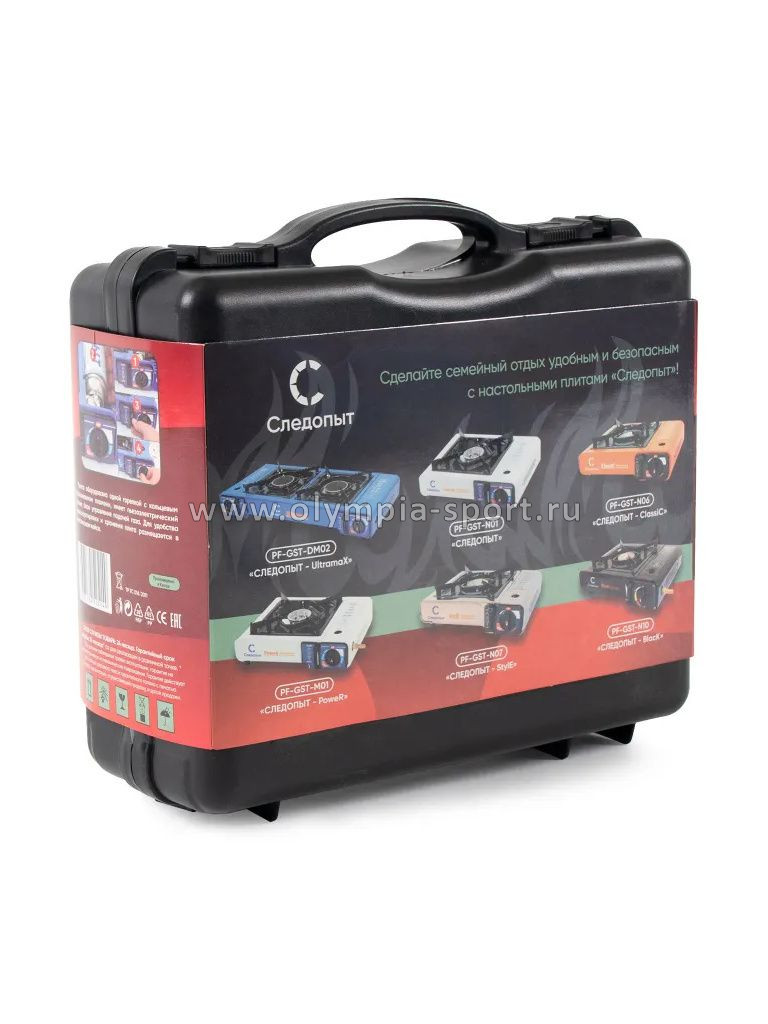 Комплектация: газовая плита, пластиковый кейс для транспортировки и хранения, инструкция по эксплуатации на русском языке.